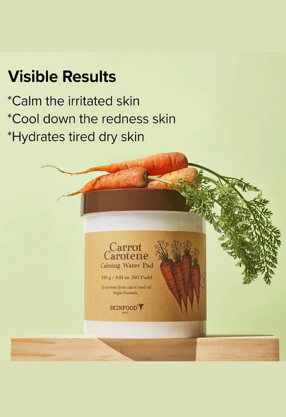 Calma y alivia la piel irritada: El extracto de zanahoria y el aloe vera trabajan en conjunto para calmar la piel sensible o irritada, aliviando el enrojecimiento y la inflamación. Hidratación profunda y duradera: El ácido hialurónico proporciona una hidratación intensa, manteniendo la piel suave, flexible y perfectamente equilibrada. Protección antioxidante: Los carotenoides y el extracto de té verde protegen la piel de los efectos negativos de la exposición ambiental, ayudando a prevenir el envejecimiento prematuro y a mantener la piel saludable. Mejora la textura de la piel: Con el uso continuo, estos pads ayudan a mejorar la textura de la piel, dejándola más suave, radiante y renovada. Refresca y revitaliza: El agua calmante de zanahoria proporciona un frescor inmediato, ideal para revitalizar la piel apagada y cansada.